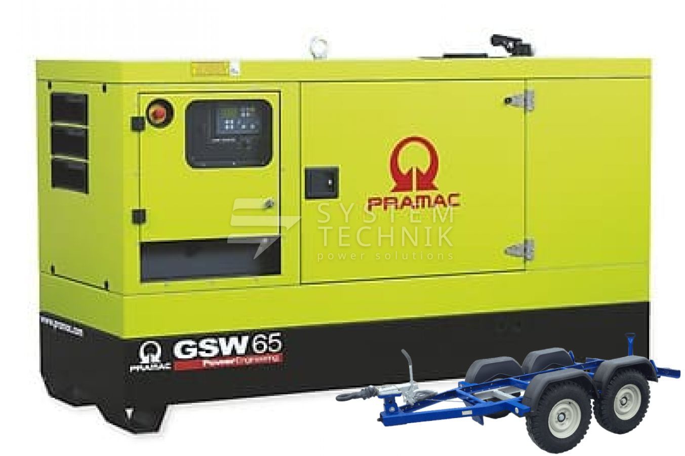 - Дизельный генератор Pramac GSW 65 P 230V 3Ф В кожухе на прицепе